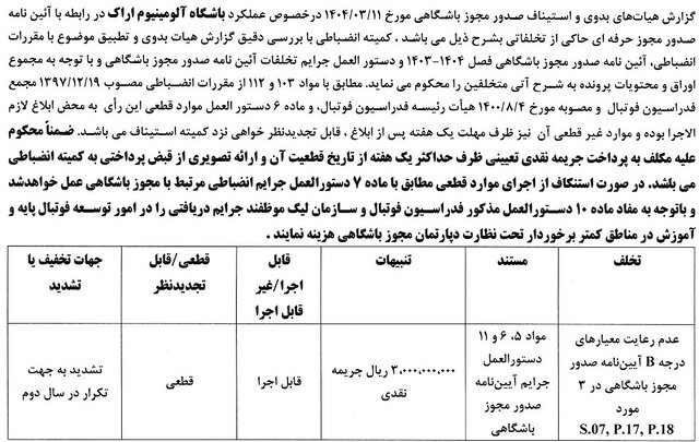 رای دعوی صدور مجوز حرفهای به طرفیت باشگاه آلومینیوم به شرح زیر است: